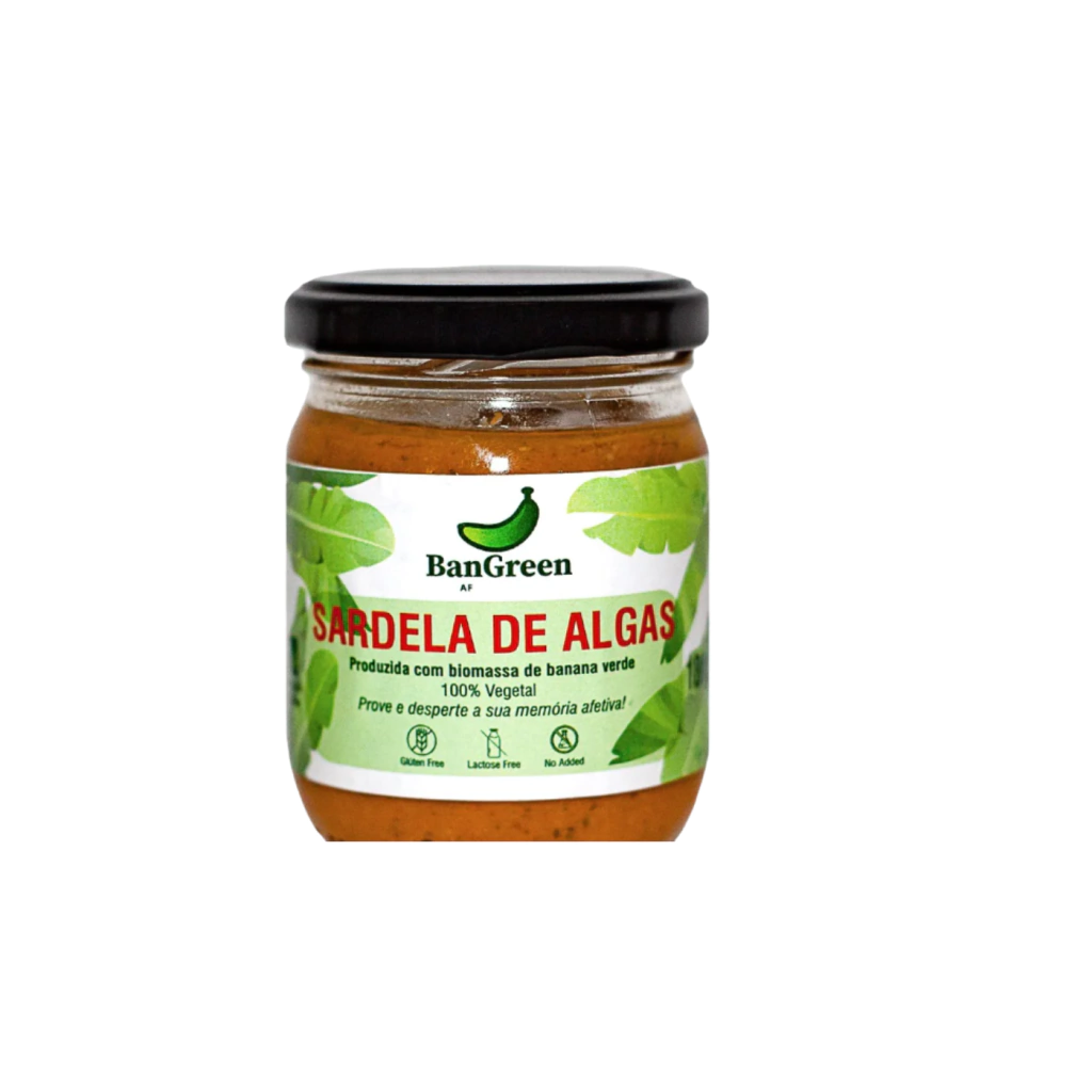 Sardela de algas – Bangreen – 180 g é um patê vegano elaborado com diferentes tipos de algas marinhas, temperos e azeite, inspirado na tradicional sardela, mas 100% vegetal.